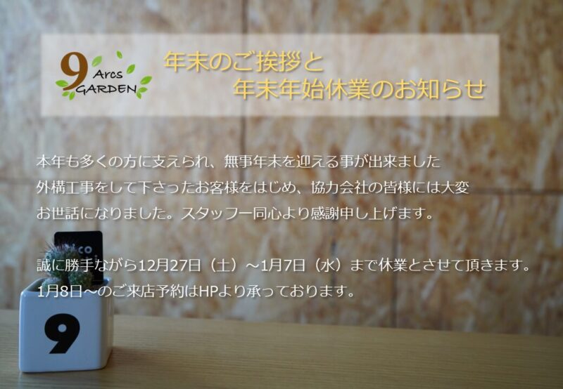 来年度も皆さまの素敵なお庭づくりのお手伝いができるように精一杯やってまいりますので何卒よろしくお願い致します。